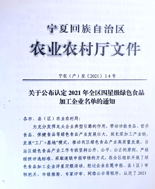 全區(qū)四星級綠色食品加工企業(yè)