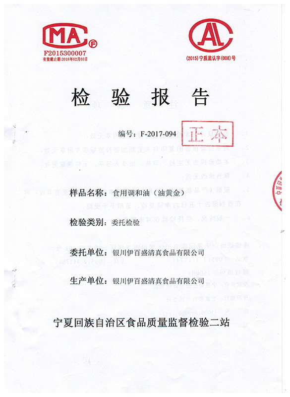 食用調(diào)和油(油黃金)檢驗(yàn)報(bào)告