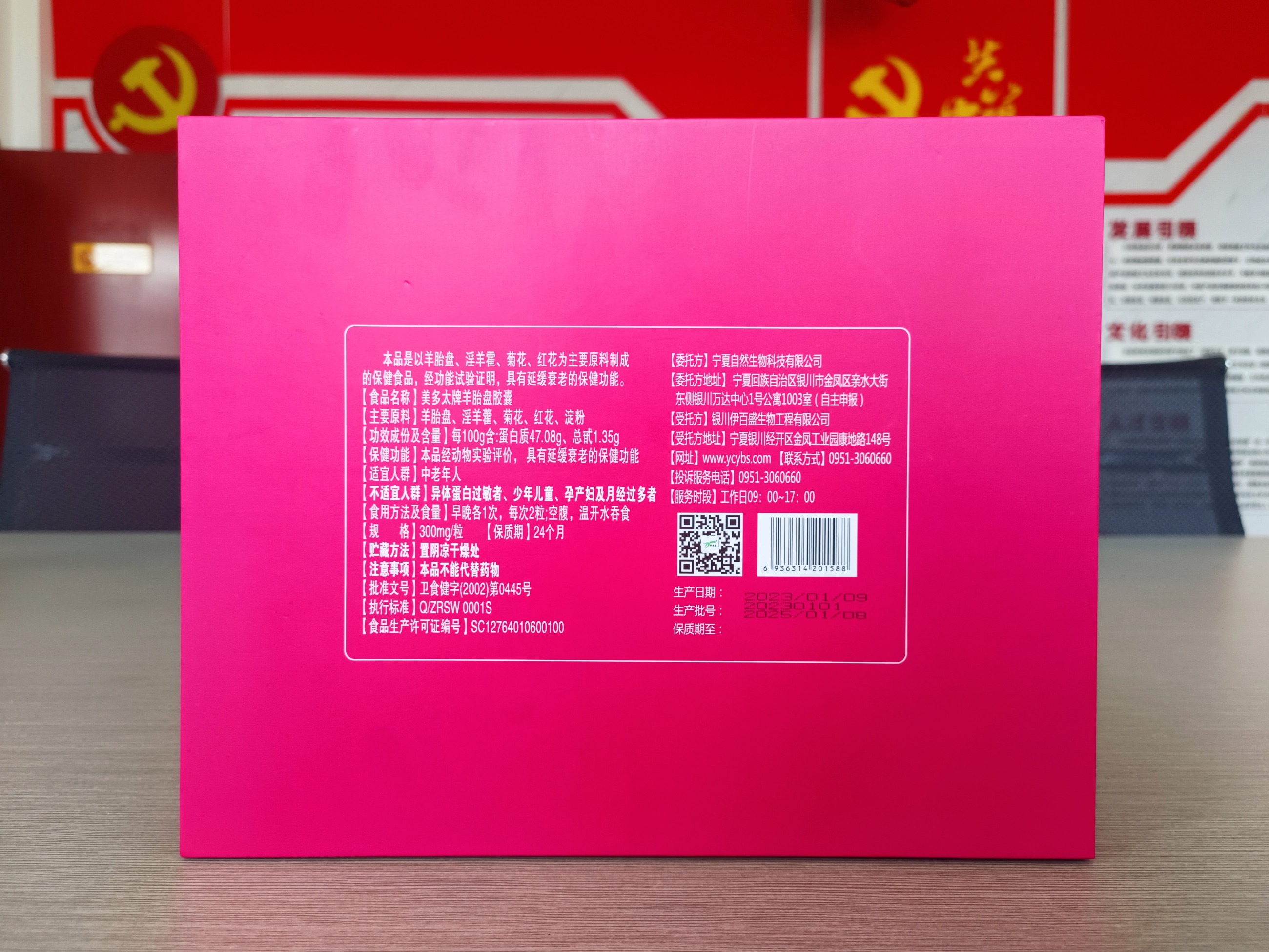 本品是以羊胎盤、淫羊藿、菊花、紅花為主要原料制成的保健食品,經功能試驗證明,具有延緩衰老的保健功能。