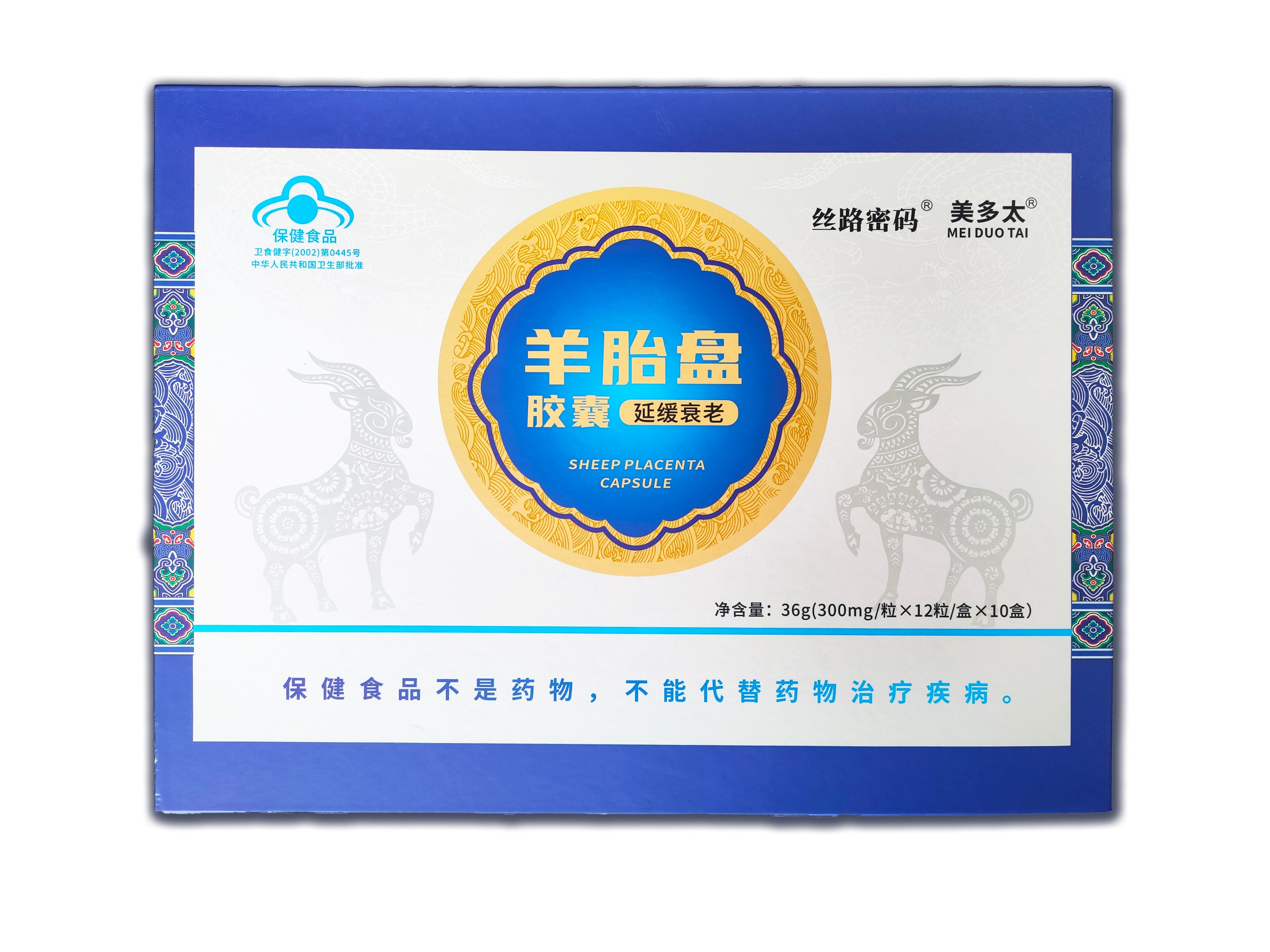 本品是以羊胎盤、淫羊藿、菊花、紅花為主要原料制成的保健食品,經功能試驗證明,具有延緩衰老的保健功能。